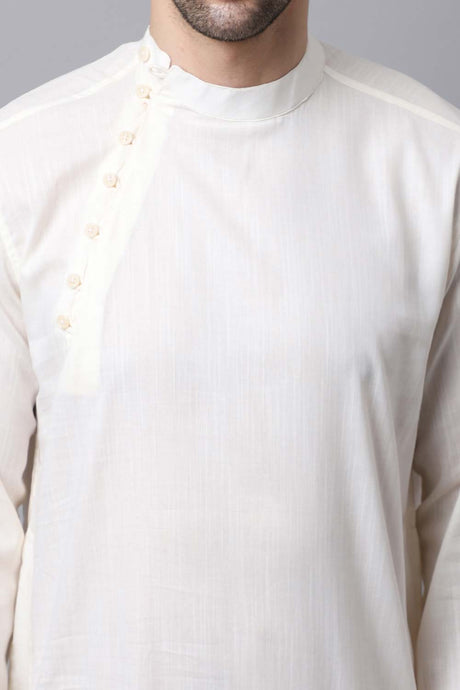 Men's Light White Solid Full Sleeve Short Kurta Top