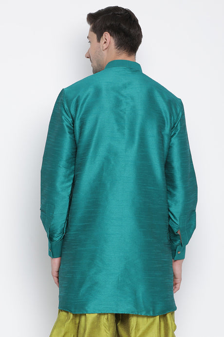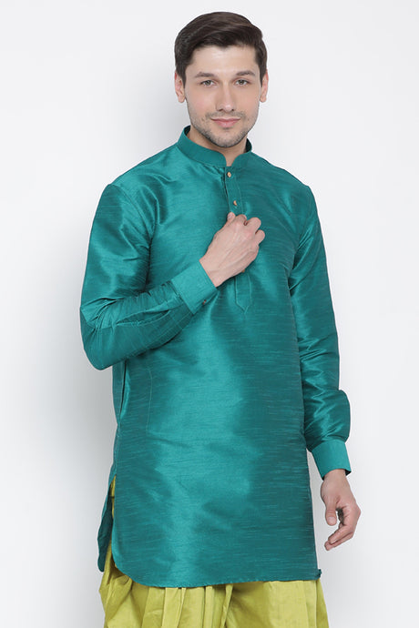 Men's Cotton Art Silk Kurta In Green