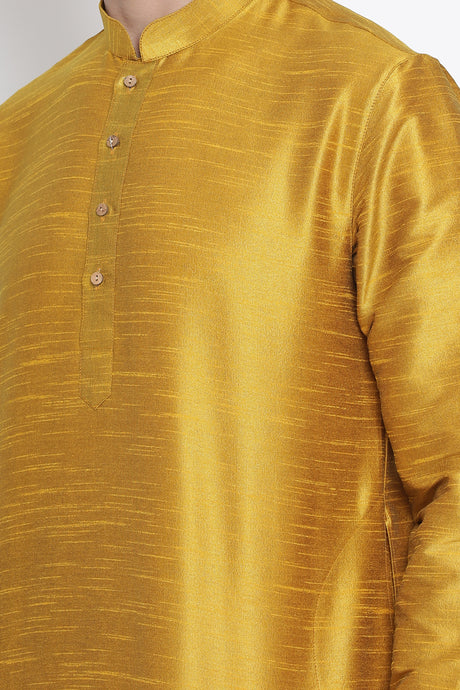 Men's Cotton Art Silk Kurta In Gold