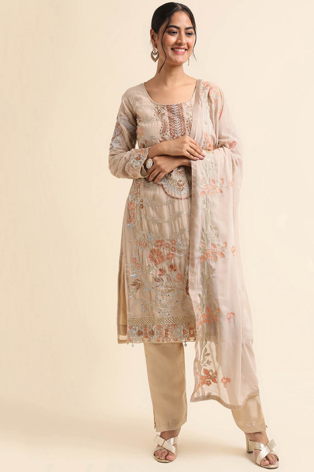 Beige Faux Georgette Pakistani Suit