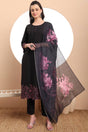 Black Embroidered Cotton Straight Cut Suit Set