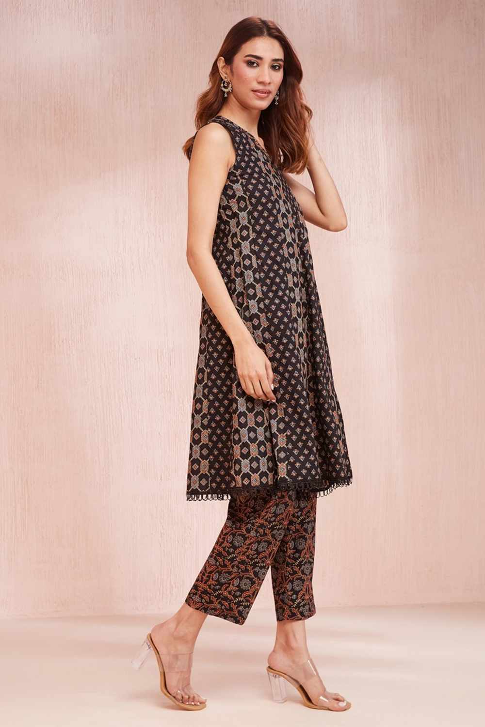 Black Ethnic Motifs Printed Cotton Kurti Pant Set