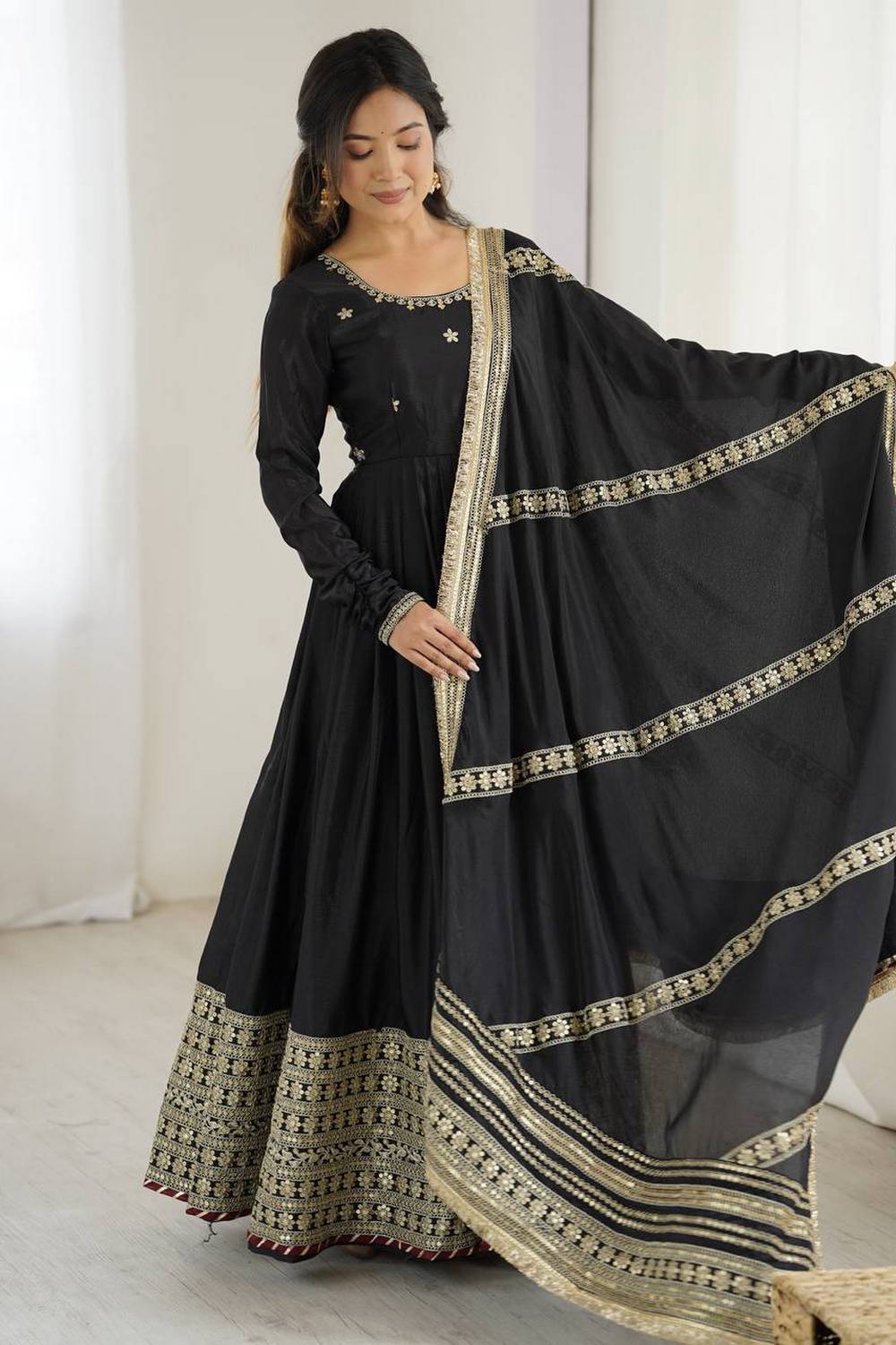 Step into effortless style with our Anarkali Suits crafted for the modern woman who cherishes tradition. Made from soft Silk it keeps you comfortable all day long. The Floral Embroidered on the design lends a touch of sophistication to your outfit. Perfect for Festive, Sangeet, Mehendi this Anarkali Suits is a must-have for versatile styling options. Style it with minimalistic accessories and flats for a casual look or jewelry and heels for special events