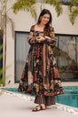 Black Floral Printed Cotton Anarkali Suit Set