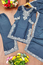 Step into effortless style with our Palazzo Suits crafted for the modern woman who cherishes tradition. Made from soft Silk it keeps you comfortable all day long. The Embroidered design lends a touch of sophistication to your outfit. Perfect for Festive, Party, Sangeet this is a must-have for versatile styling options. Style it with minimalistic accessories and flats for a casual look or jewelry and heels for special events