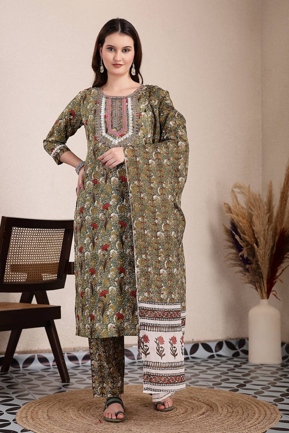Step into effortless style with our Straight Cut Suit Set crafted for the modern woman who cherishes tradition. Made from soft Cotton it keeps you comfortable all day long. The Floral Printed design lends a touch of sophistication to your outfit. Perfect for Casual this Straight Cut Suit Set is a must-have for versatile styling options. Style it with minimalistic accessories and flats for a casual look