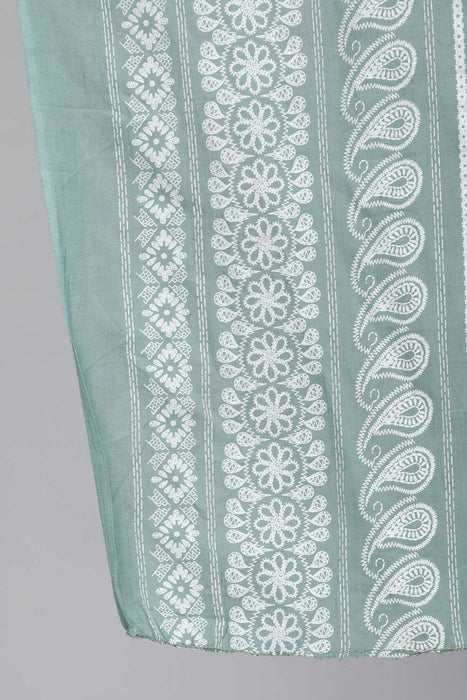 Green Floral Printed Straight Kurta With Plazo And Dupatta