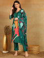 Green Silk Blend Floral Printed Straight Kurti Pants With Dupatta
