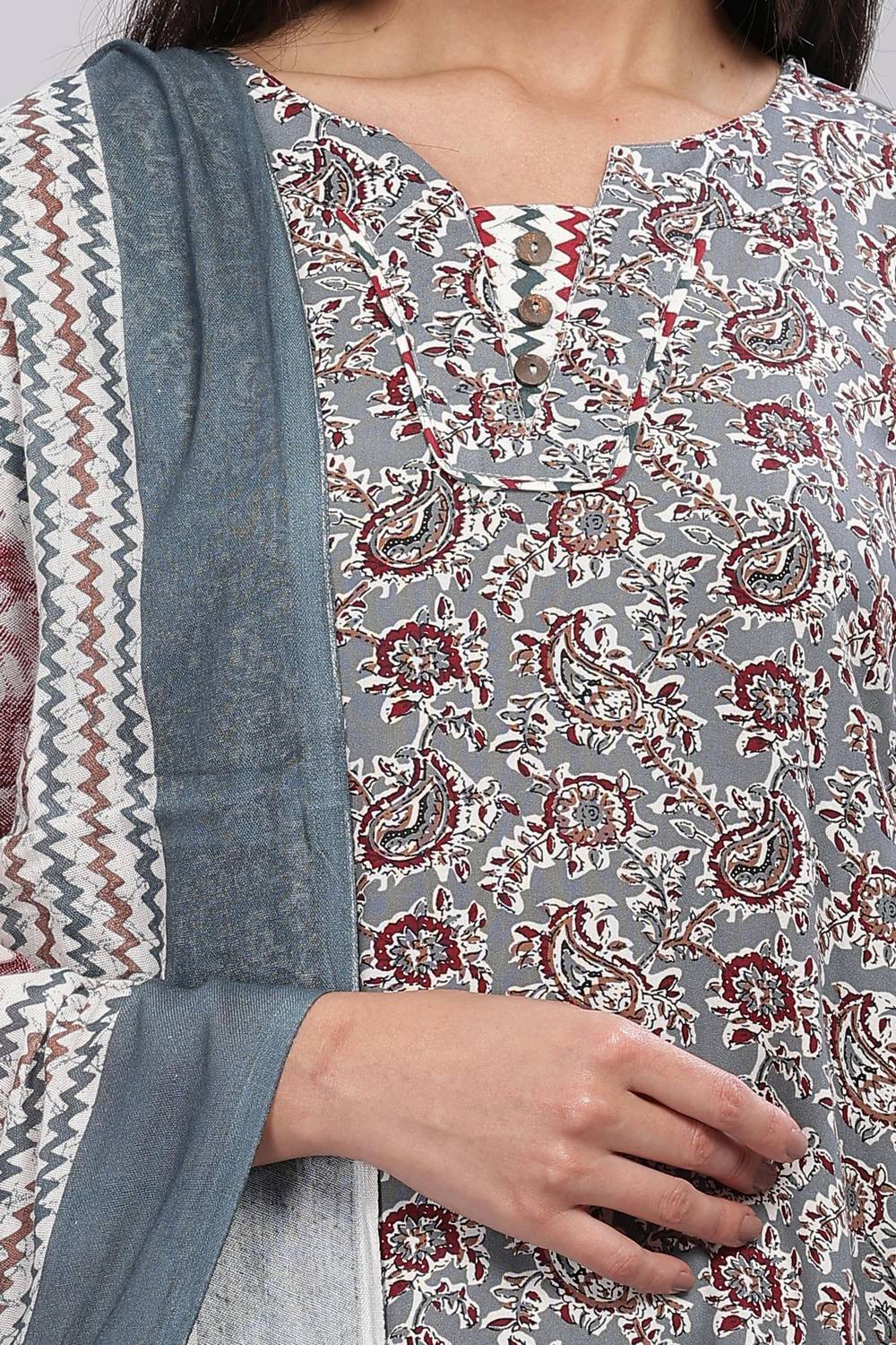 Grey Printed Rayon Kurti Pant Set