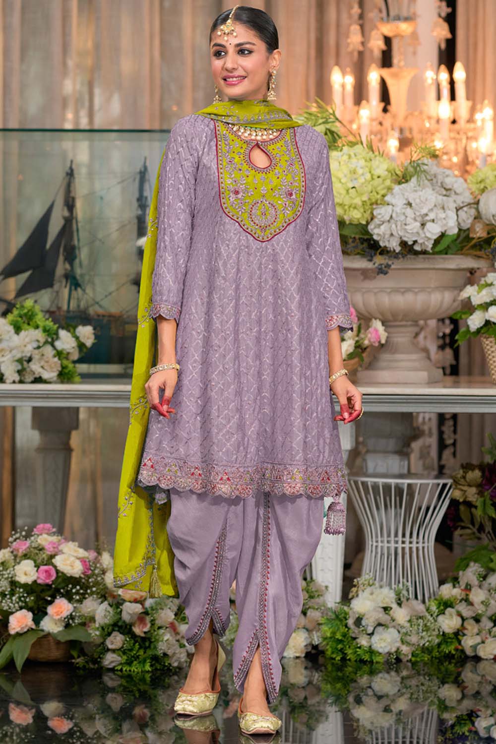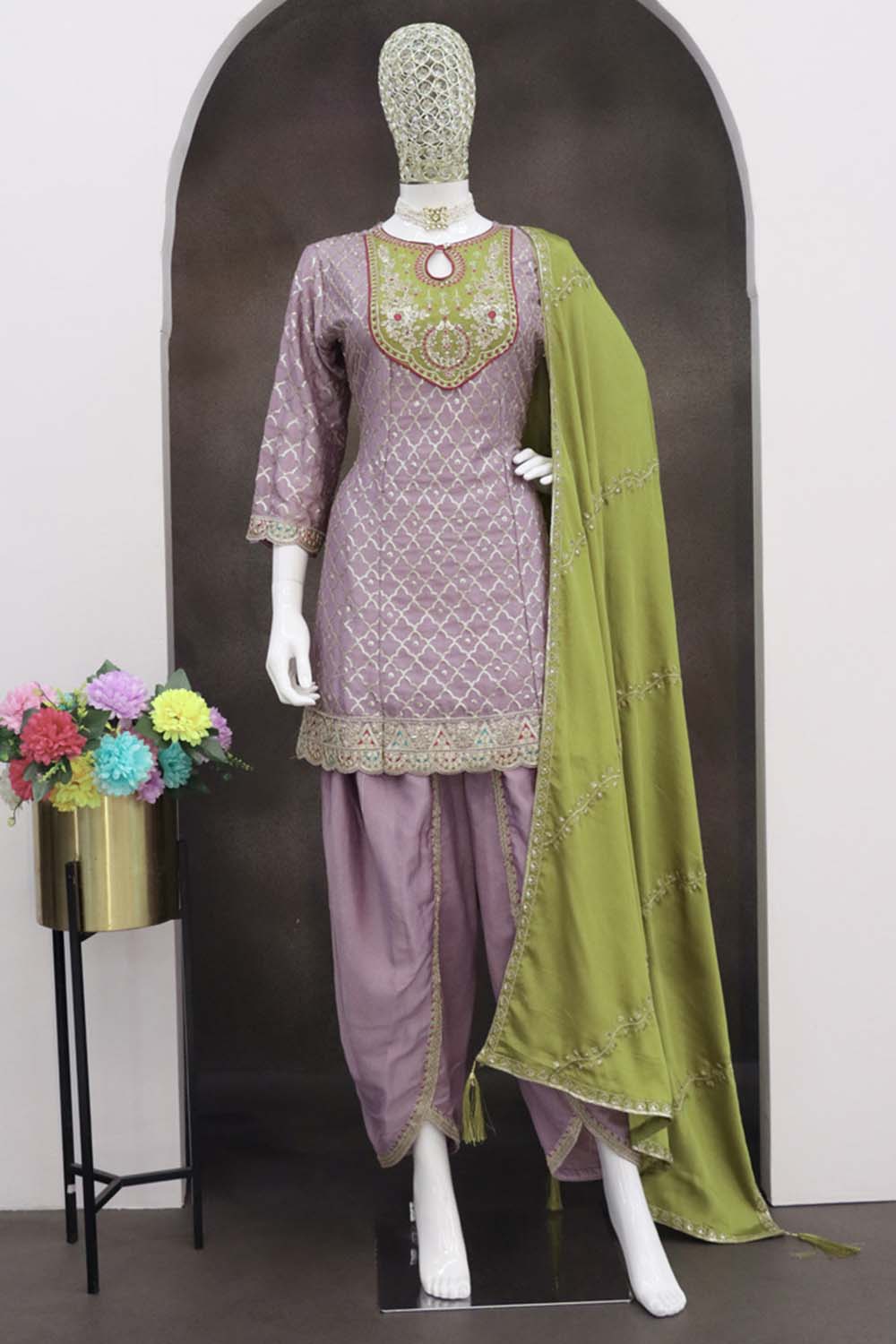 Lavender Sequin with Embroidered Art Silk Patiala Suit Set