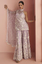 Lavender Sequin with Floral Embroidered Net Palazzo Suits