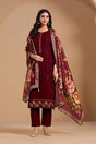 Maroon Floral Embroidered Chinon Straight Cut Suits