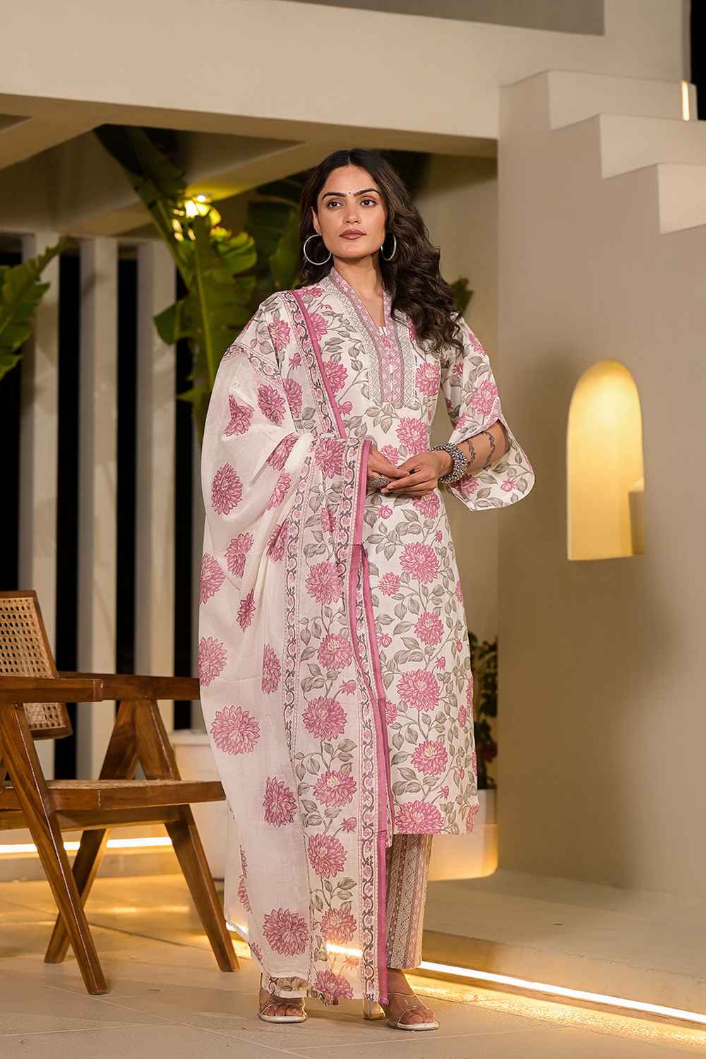 Multi-Color Floral Print Pure Cotton Kurti Pant Set