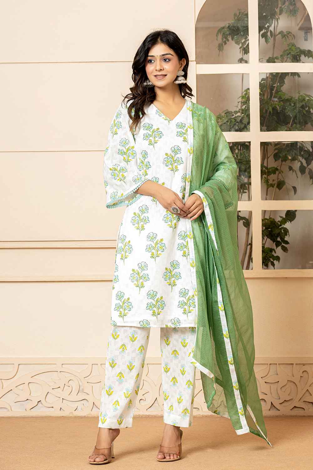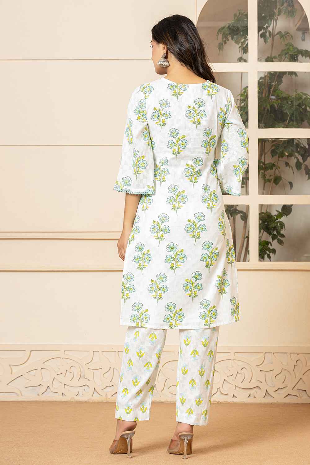 Stay stylish and comfortable with our Kurti Pant Sets designed for all-day elegance. Made with Pure Cotton this set is perfect for easy movement and timeless appeal. The beautiful Floral Print and intricate elevate its design for casual or daily wear, this Kurti Pant Set is your go-to outfit. Pair it with elegant earrings and kolhapuri sandals or a heels for a traditional look or wedges for a modern edge.