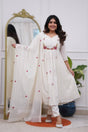 Off White Floral Embroidered Chanderi Anarkali Suits