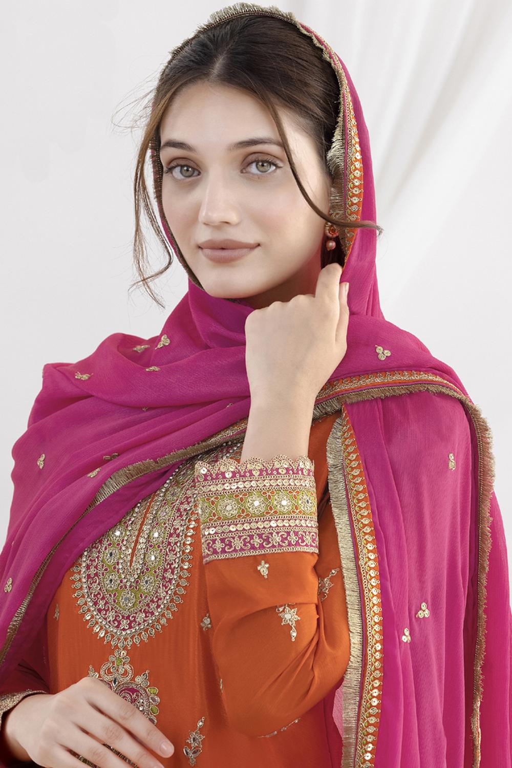 Orange Sequin with Floral Embroidered Art Silk Kurti Pant Set