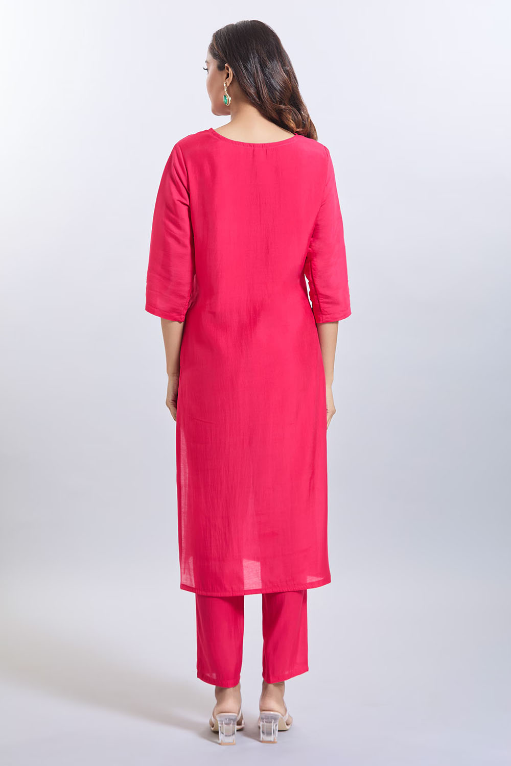 Stay stylish and comfortable with our Kurti Pant Set designed for all-day elegance. Made with Viscose Chandheri this set is perfect for easy movement and timeless appeal. The beautiful and intricate Embroidered elevate its design for festivewear this kurti set is your go-to outfit. Pair it with elegant earrings and kolhapuri sandals or a heels for a traditional look or wedges for a modern edge