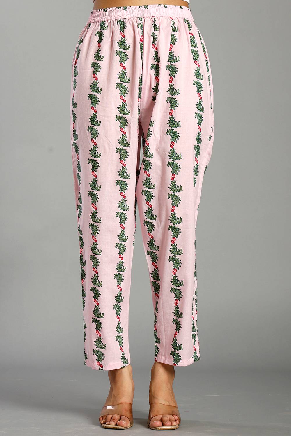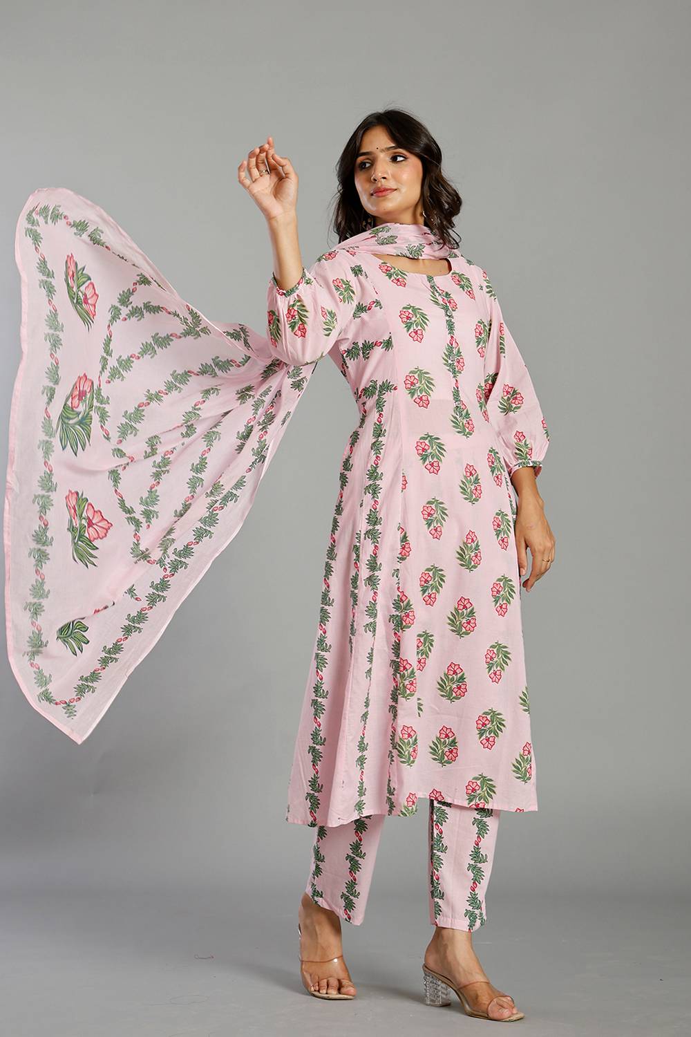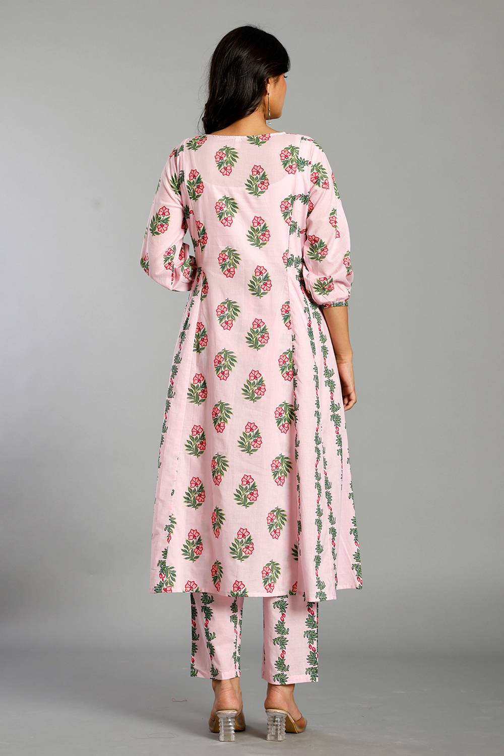 Pink Floral Printed Cotton Straight Cut Suit Set