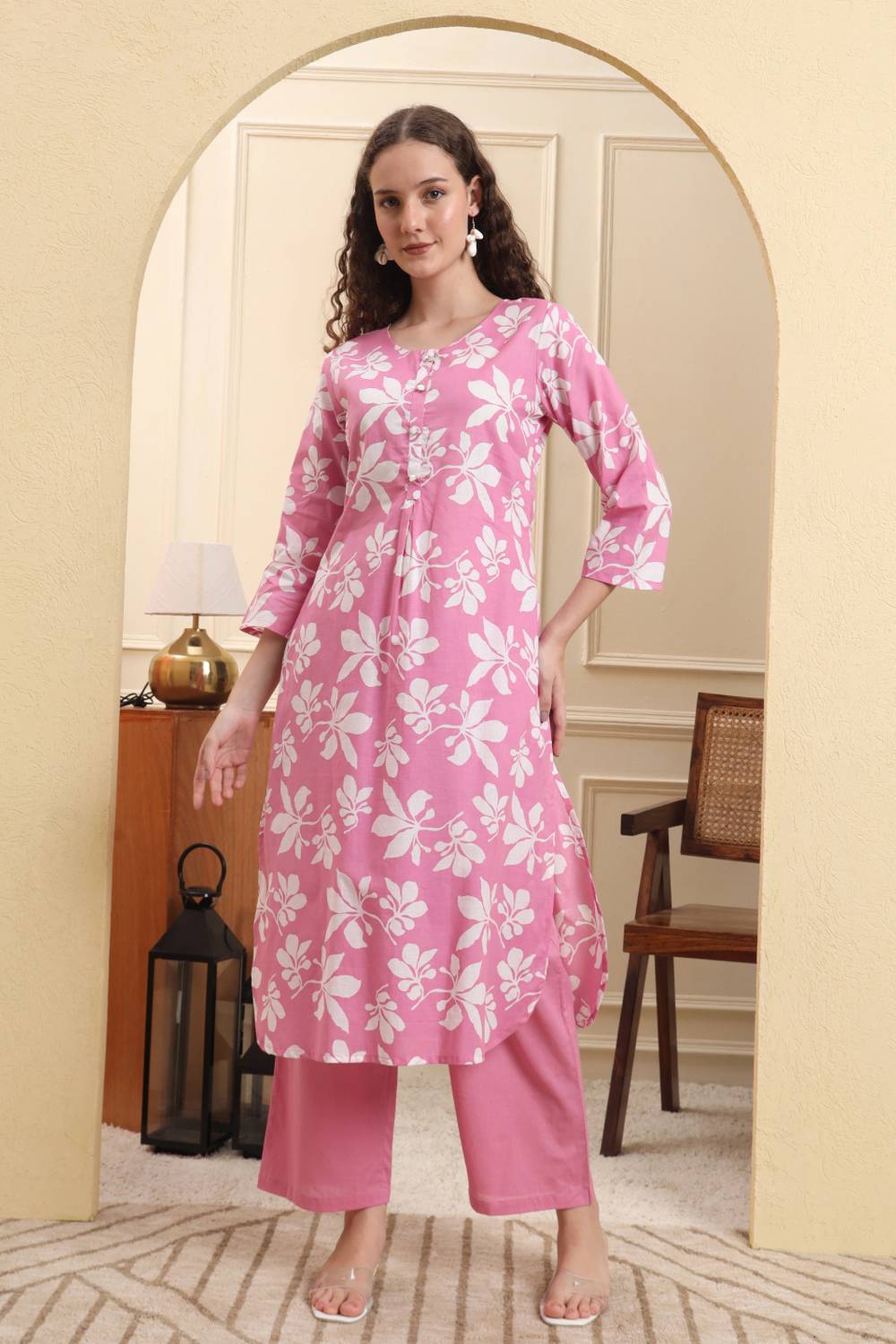 Step into effortless style with our Straight Cut Suit Set crafted for the modern woman who cherishes tradition. Made from soft Cotton it keeps you comfortable all day long. The Printed design lends a touch of sophistication to your outfit. Perfect for Casual this Straight Cut Suit Set is a must-have for versatile styling options. Style it with minimalistic accessories and flats for a casual look