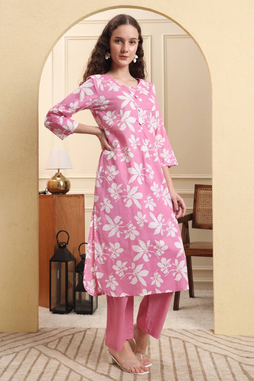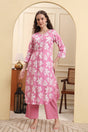 Pink Printed Cotton Straight Cut Suit Set