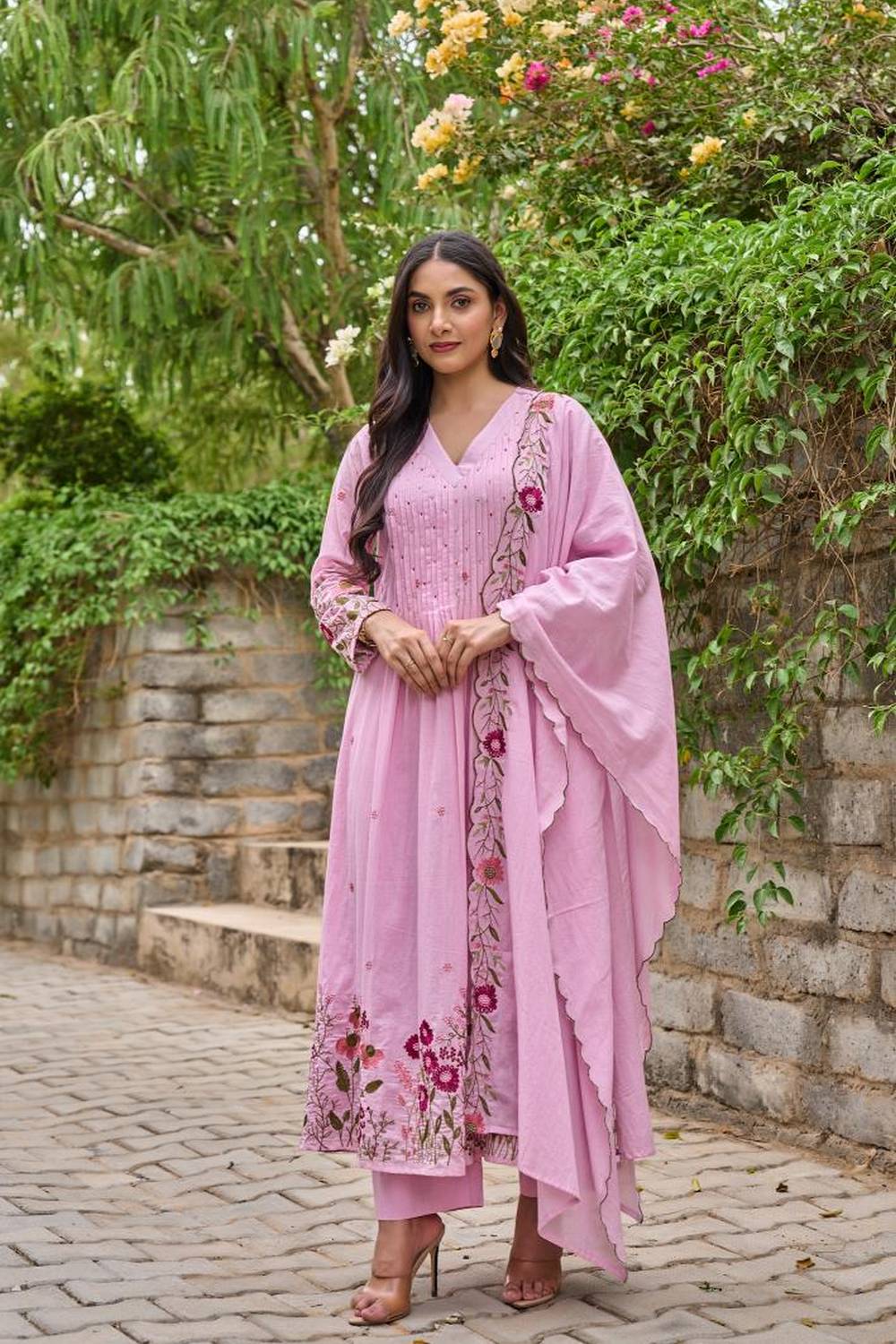 Pink Sequin with Embroidered Chanderi Anarkali Suits
