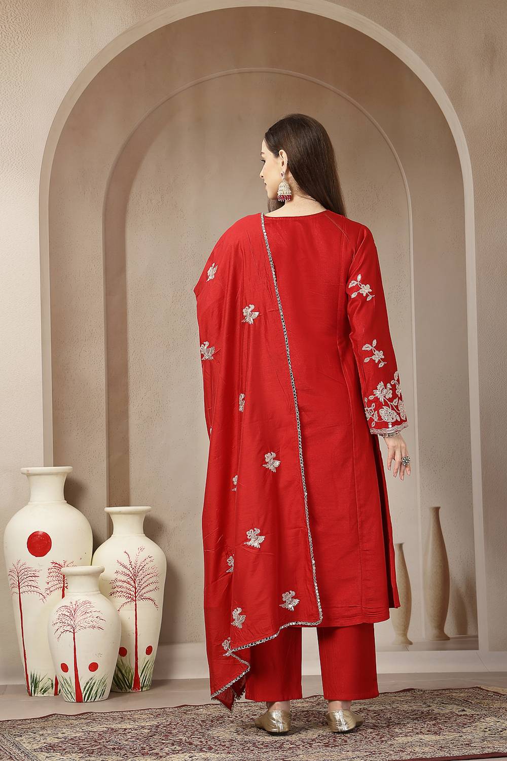 Step into effortless style with our Anarkali Suit Set crafted for the modern woman who cherishes tradition. Made from soft Silk blend it keeps you comfortable all day long. The Embroidered design lends a touch of sophistication to your outfit. Perfect for Casual this Anarkali Suit Set is a must-have for versatile styling options. Style it with minimalistic accessories and flats for a casual look