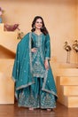 Turquoise Sequin with Embroidered Silk Sharara Suits