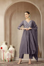 Violet Embroidered Silk Anarkali Suit Set