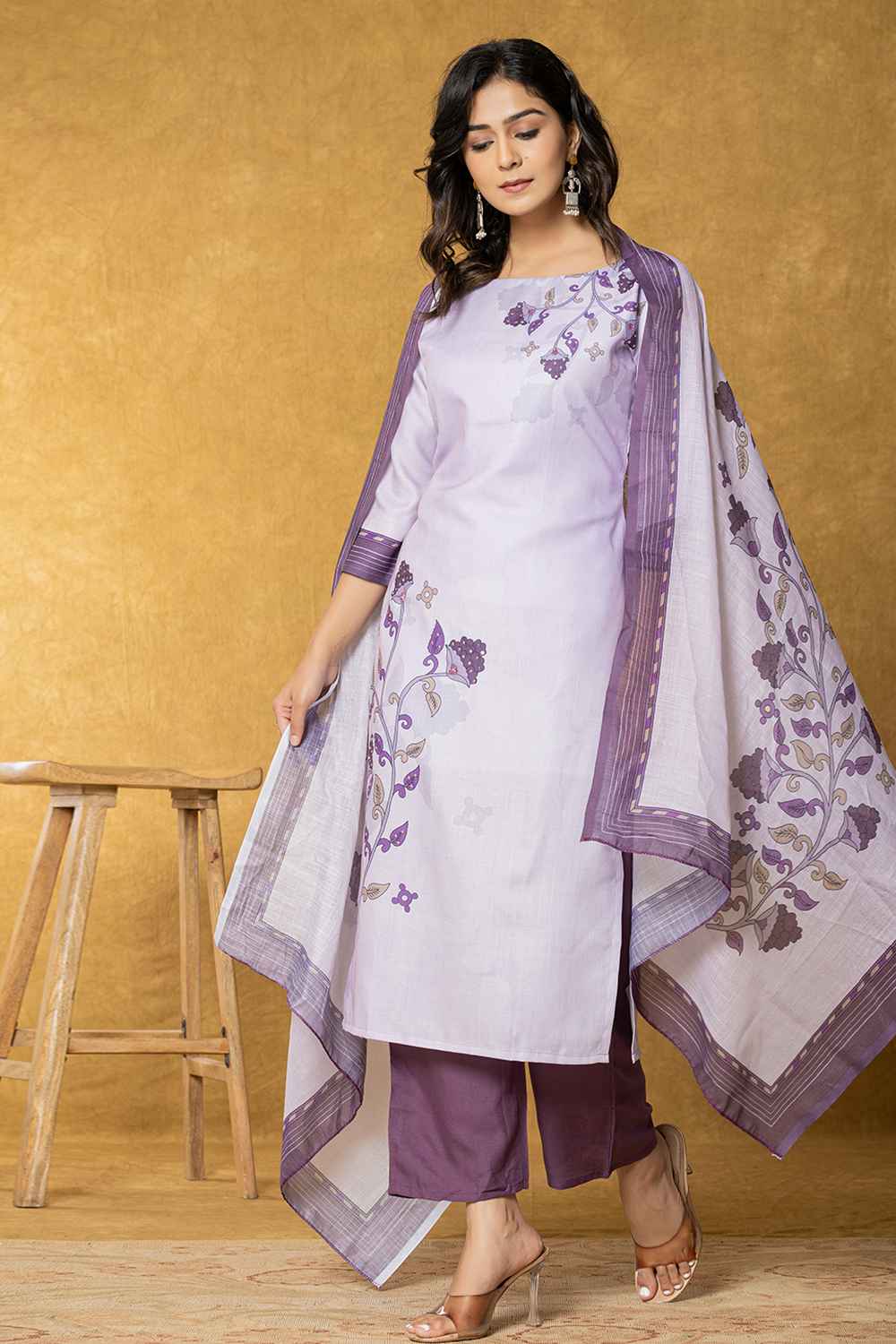 Violet Ethnic Motifs Linen Kurti Pant Set