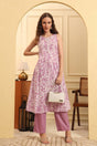 Violet Printed Cotton Straight Cut Suit Set