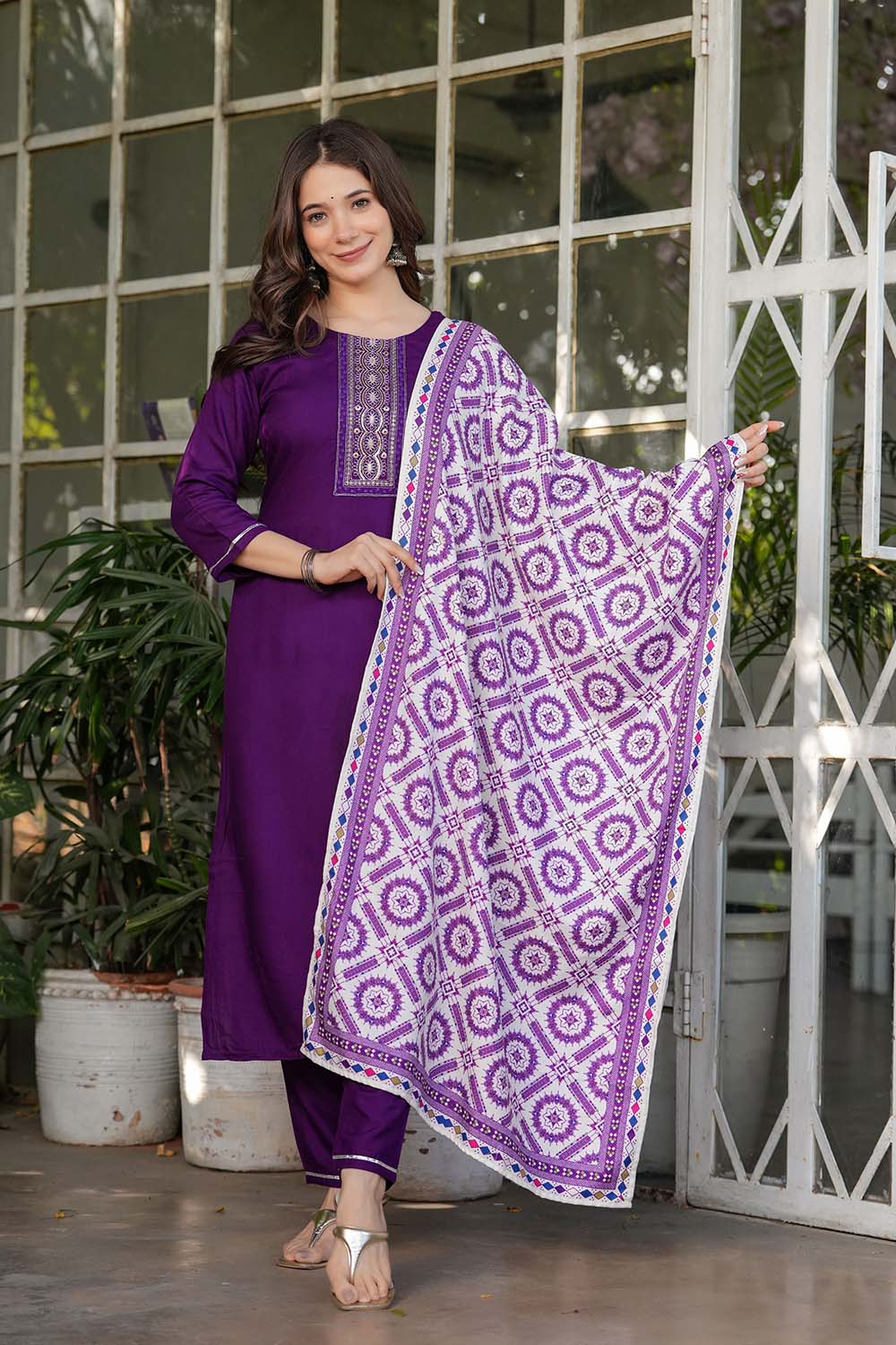 Step into effortless style with our Straight Cut Suit Set crafted for the modern woman who cherishes tradition. Made from soft Rayon it keeps you comfortable all day long. The Solid design lends a touch of sophistication to your outfit. Perfect forFestivewear this salwar suit is a must-have for versatile styling options. Style it with minimalistic accessories and flats for a casual look or jewelry and heels for special events