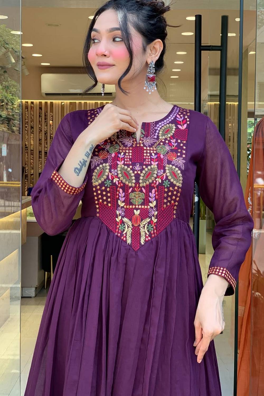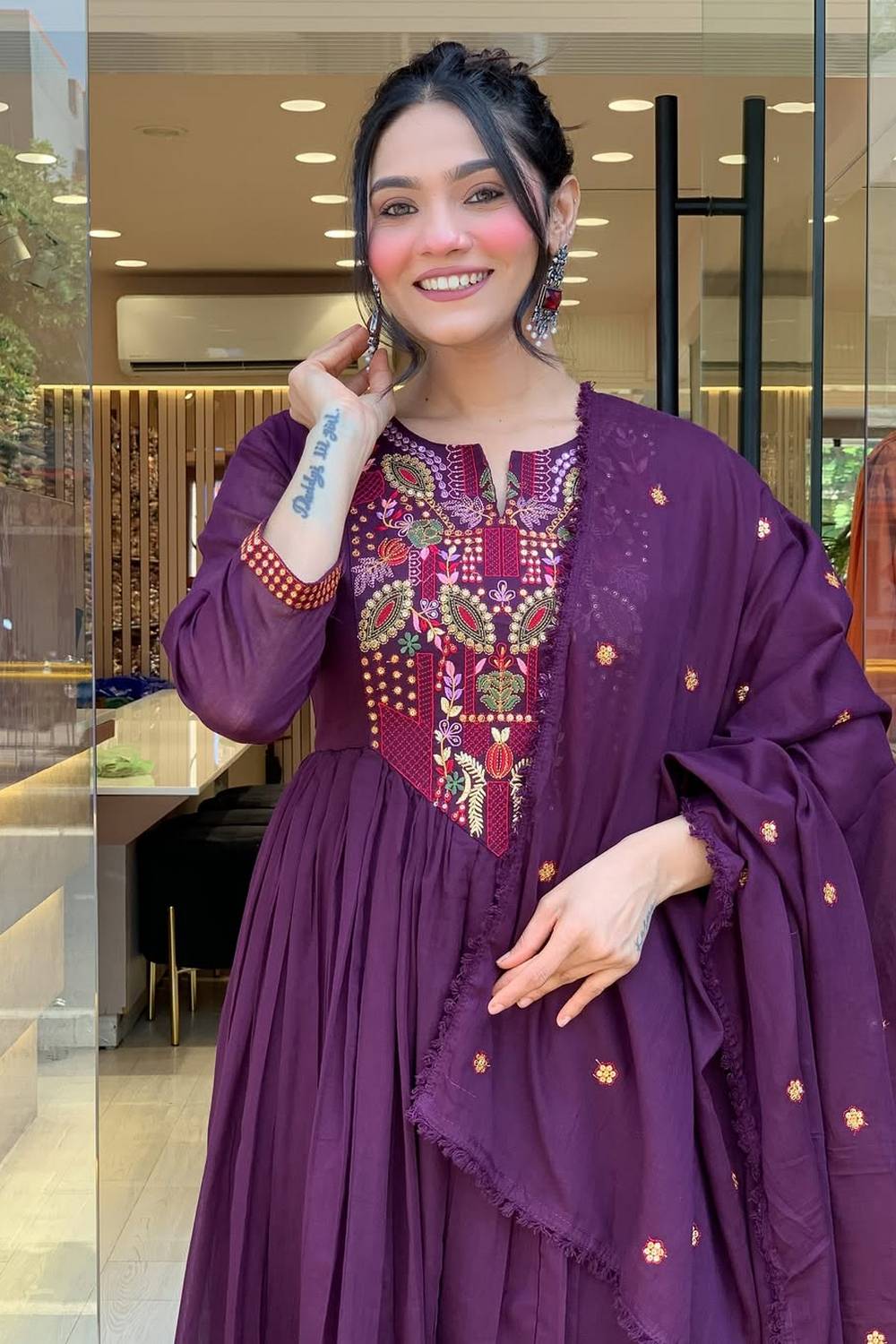 Step into effortless style with our Anarkali Suit Set crafted for the modern woman who cherishes tradition. Made from soft Chanderi it keeps you comfortable all day long. The Embroidered design lends a touch of sophistication to your outfit. Perfect for Festive this Anarkali Suit Set is a must-have for versatile styling options. Style it with minimalistic accessories and flats for a casual look or jewelry and heels for special events