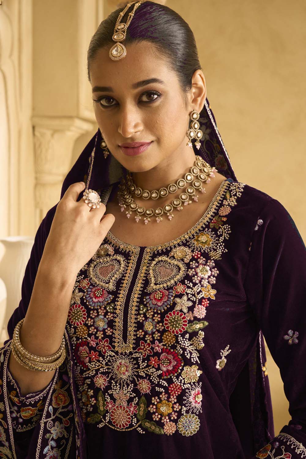 Step into effortless style with our Palazzo Suit Set crafted for the modern woman who cherishes tradition. Made from soft Velvet it keeps you comfortable all day long. The Sequin with Embroidered design lends a touch of sophistication to your outfit. Perfect for Festivewear,Weddingwear,Sangeet,Mehendi this salwar suit is a must-have for versatile styling options. Style it with minimalistic accessories and flats for a casual look or jewelry and heels for special events