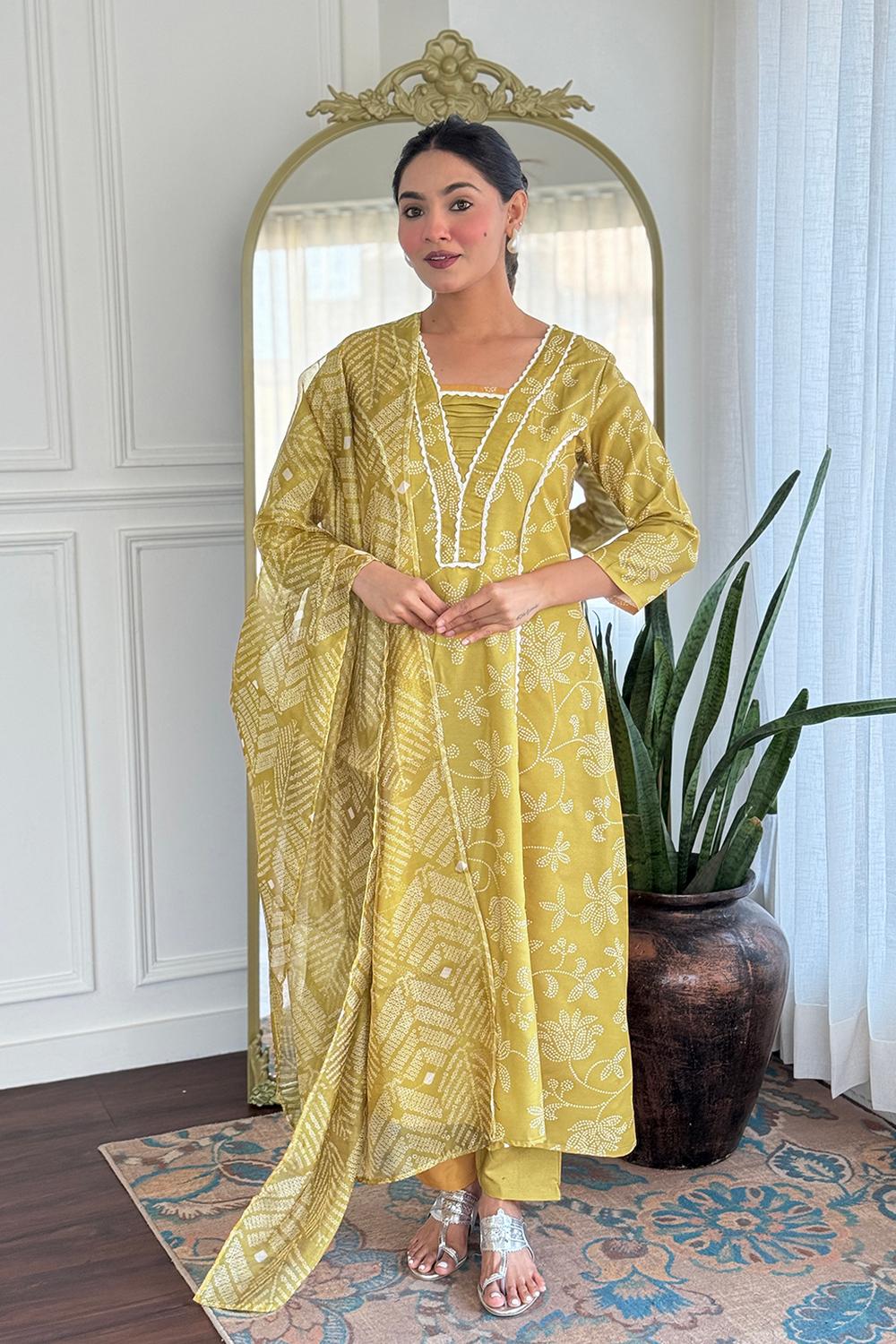 Step into effortless style with our Anarkali Suits crafted for the modern woman who cherishes tradition. Made from soft Rayon it keeps you comfortable all day long. The Bandhani Printed design lends a touch of sophistication to your outfit. Perfect for Festive this Anarkali Suits is a must-have for versatile styling options. Style it with minimalistic accessories and flats for a casual look or jewelry and heels for special events