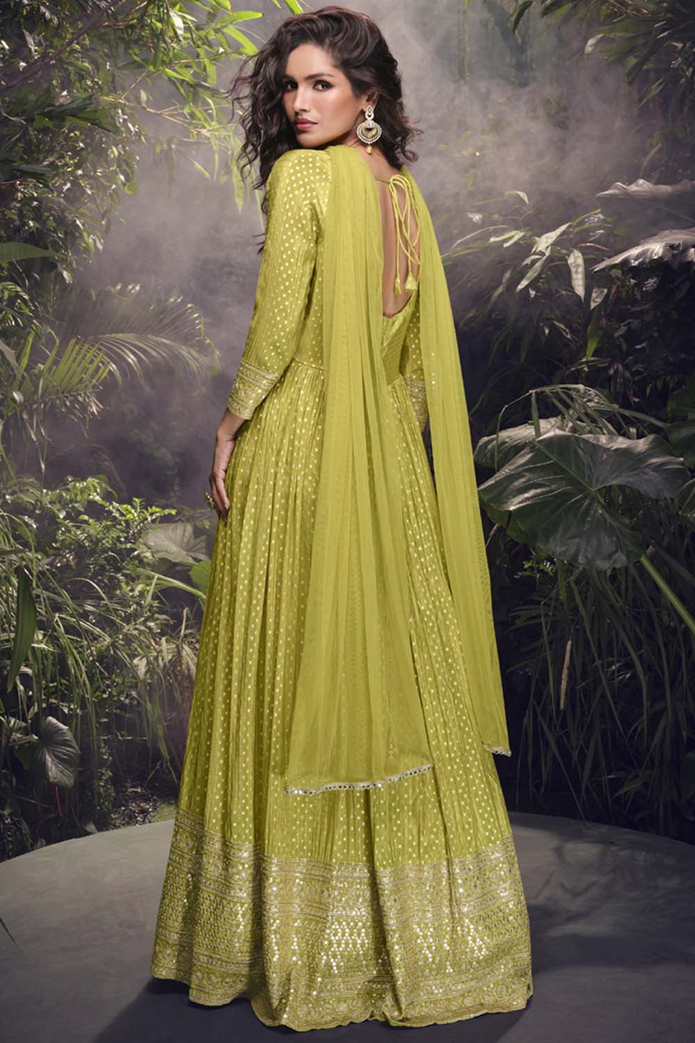 Yellow Dot Printed Viscose Anarkali Suit Set