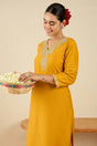 Yellow Embroidered Chinon Kurti Pant Set