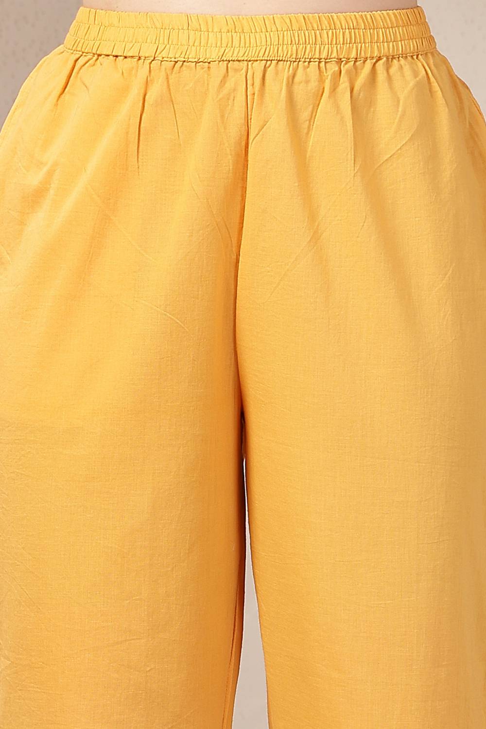 Yellow Floral Printed Cotton Straight Cut Suit Set