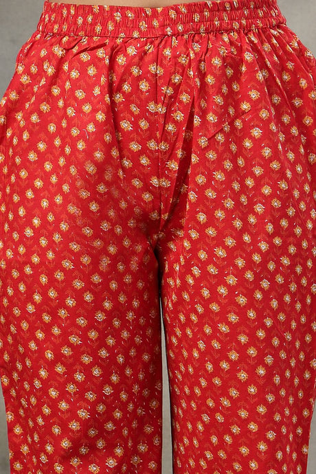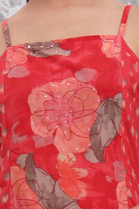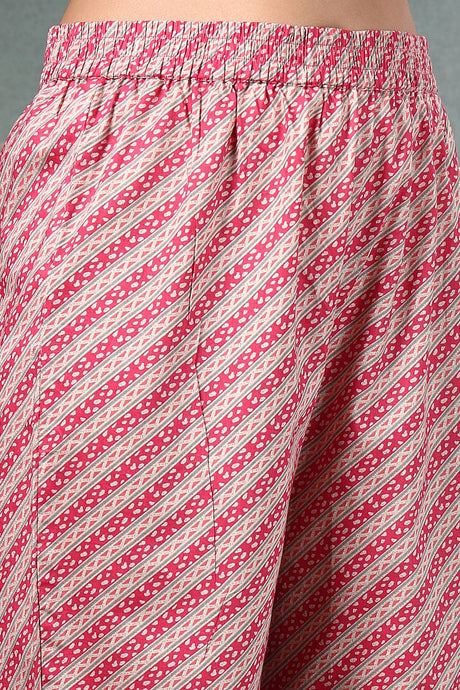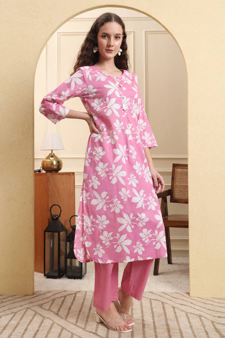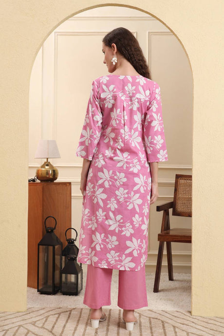 Dark Pink Floral Printed Cotton Palazzo Suit Set