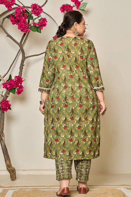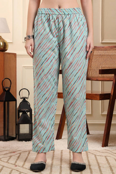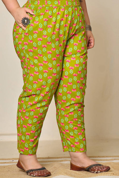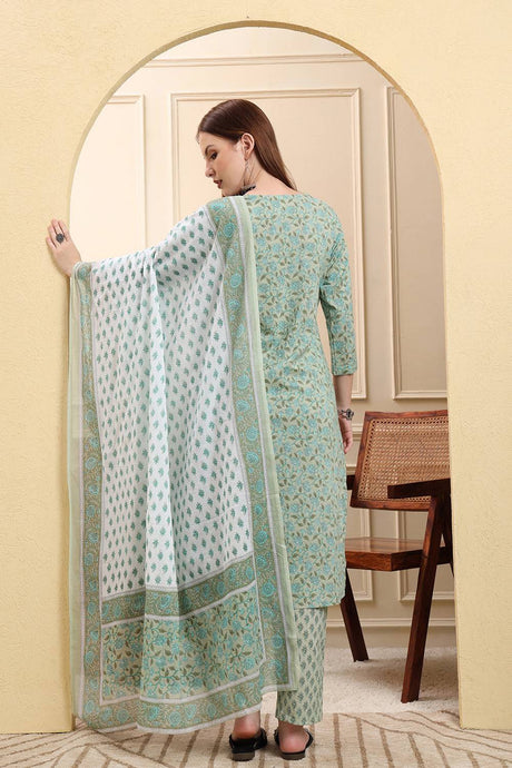 Sea Green Floral Printed Cotton Straight Cut Suit Set