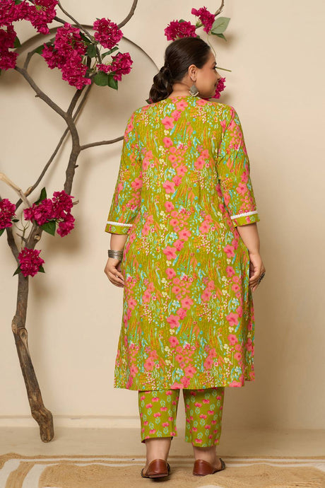 Yellow Floral Printed Cotton Anarkali Suit Set
