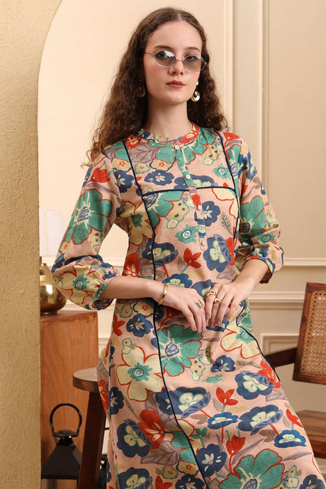 Multi Color Floral Printed Cotton Straight Cut Suit Set