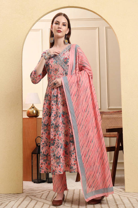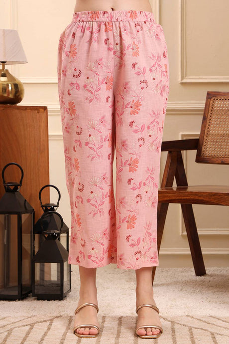Pink Floral Printed Cotton Straight Cut Suit Set