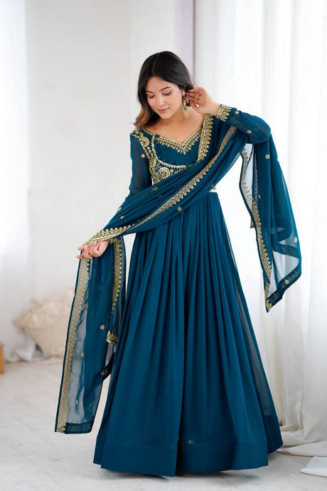 Royal Blue Floral Embroidered Georgette Anarkali Suits
