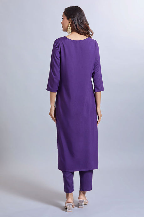 Light Pink Embroidered Silk Straight Cut Suit Set
