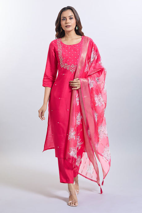 Pink Sequin with Embroidered Art Silk Pakistani Suit Set