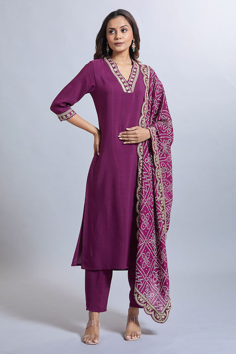 Violet Sequin with Embroidered Art Silk Pakistani Suit Set