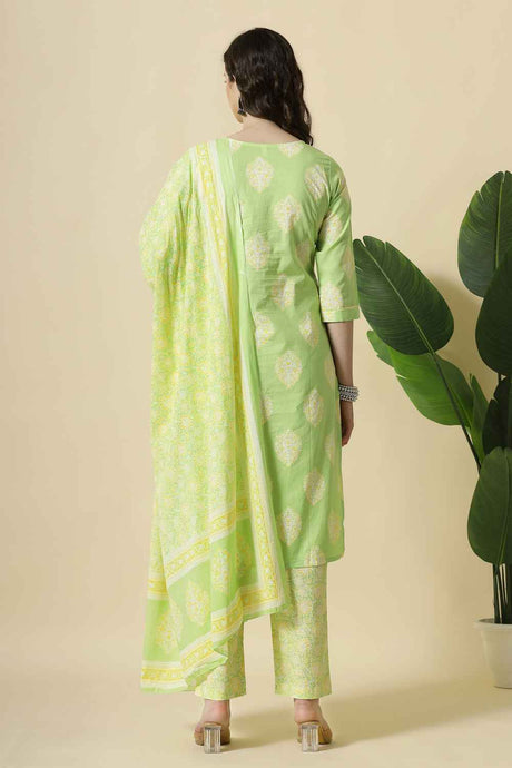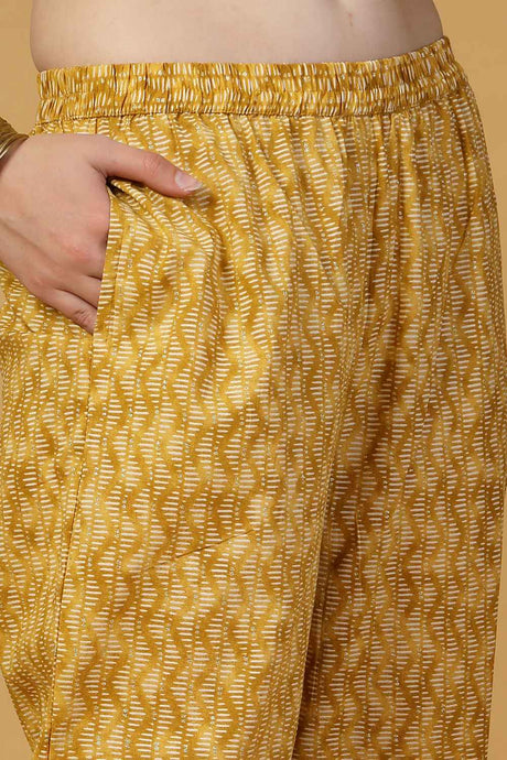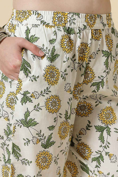 Yellow Floral Printed Cotton Kurti Palazzo Set