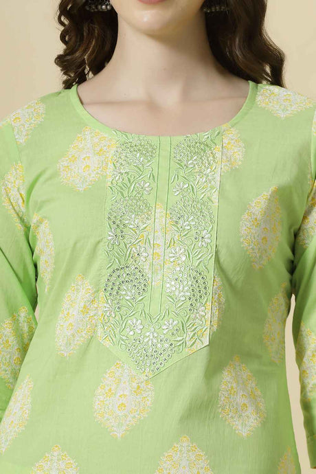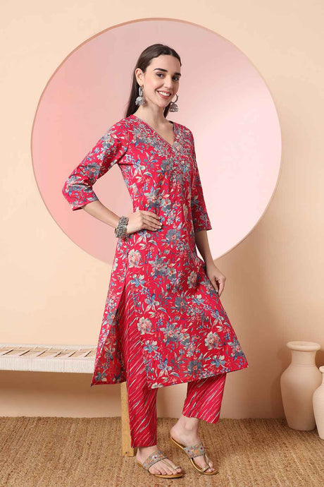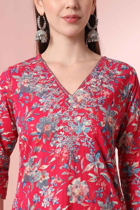 Multi-Color Floral Printed Cotton Kurti Pant Set