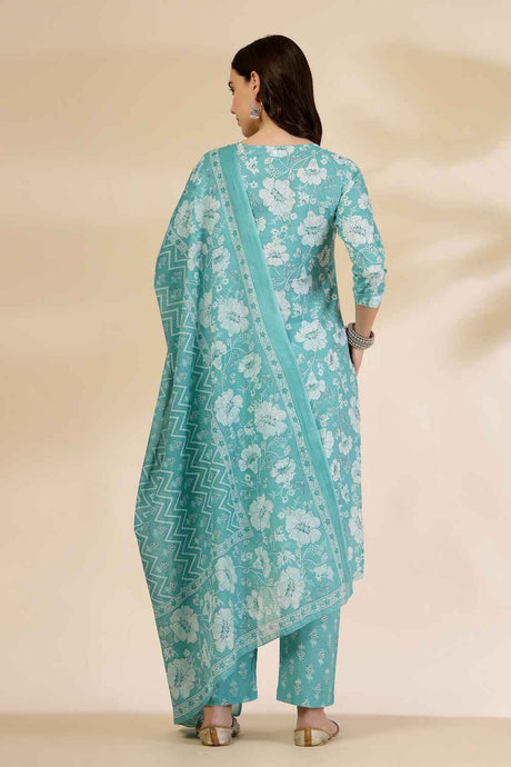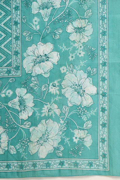 Turquoise Floral Printed Cotton Kurti Pant Set