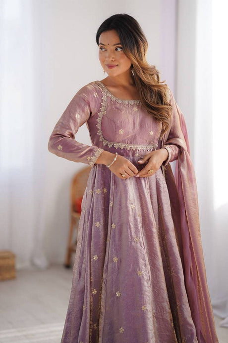 Pink Sequin with Embroidered Silk Anarkali Suits